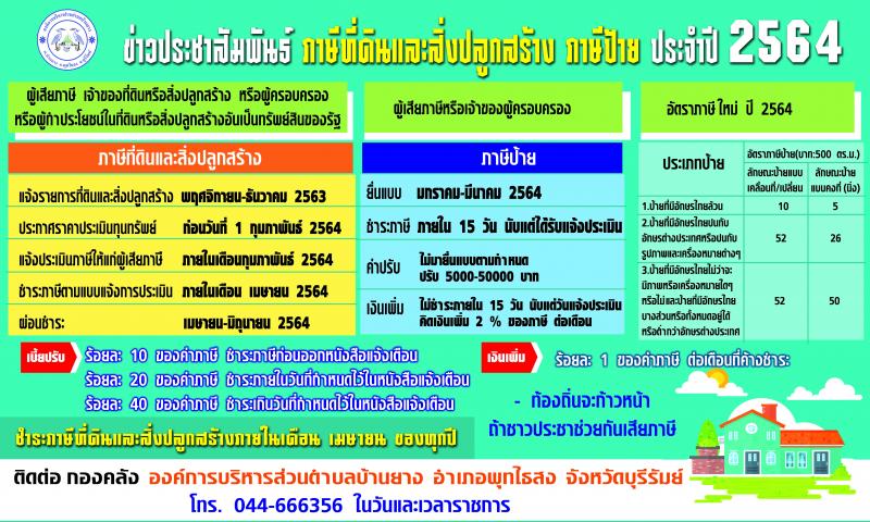 ประชาสัมพันธ์ ภาษีที่ดินและสิ่งปลูกสร้าง ประจำปี 2564