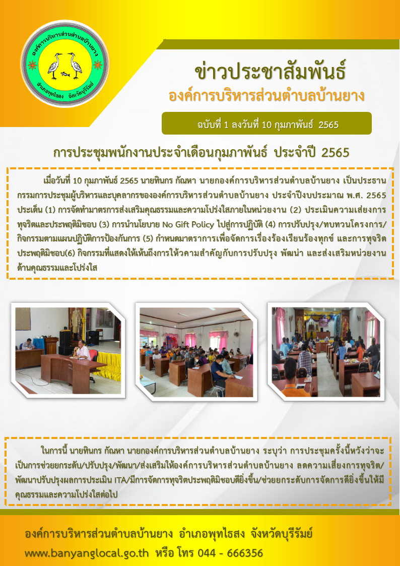 กิจกรรมการประชุมพนักงานประจำเดือนกุมภาพันธ์ 2565